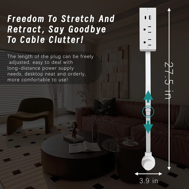 Expand your power access with this multi-functional electrical outlet extender. Designed with a 180° rotating and adjustable body, it fits perfectly behind sofas, beds, and tight spaces while keeping cables organized.